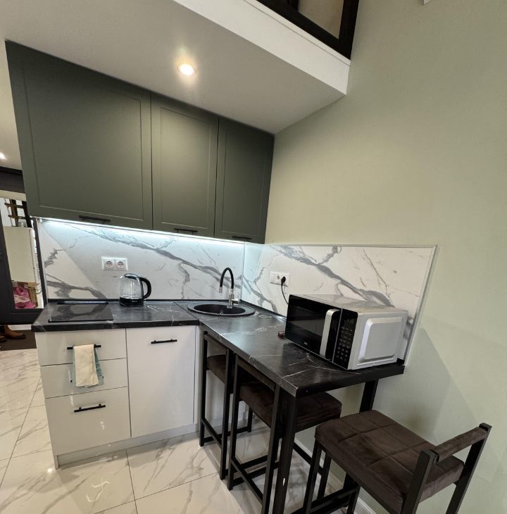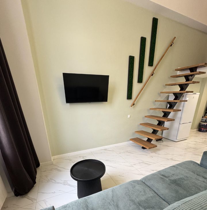 Сдается двухуровневая студия. Апартаменты после косметического ремонта,новая мебель, ортопедический матрас. Есть всё необходимое для жизни.