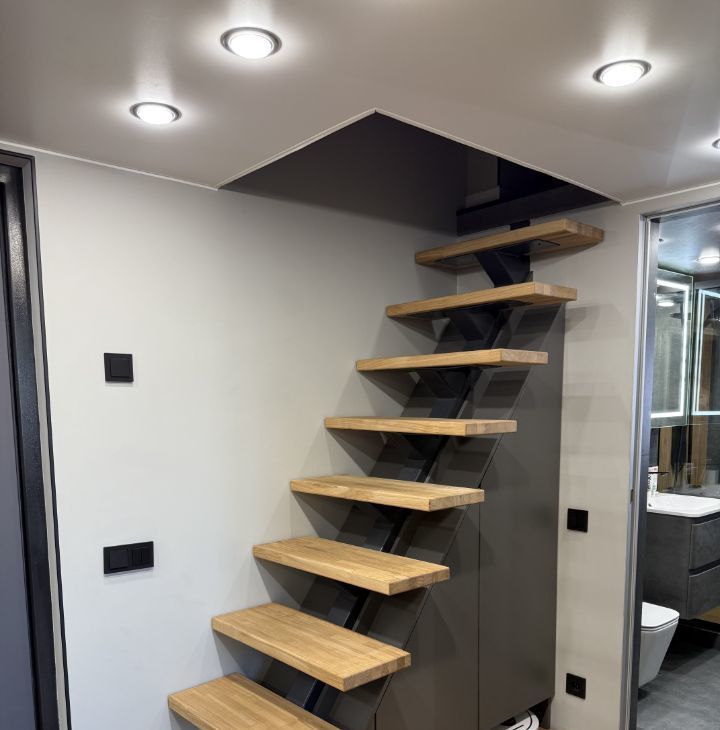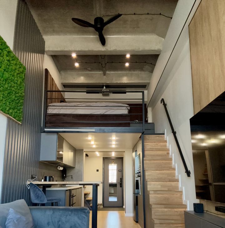 первая антресоль — уютная спальня с полноразмерным спальным местом (180 х 200 см);