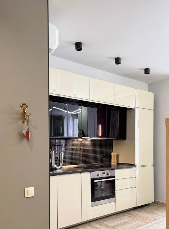 В вашем распоряжении будет вся необходимая встраиваемая бытовая техника: электрическая плита, холодильник, посудомоечная машина, стиральная машина, кондиционер и телевизор.
