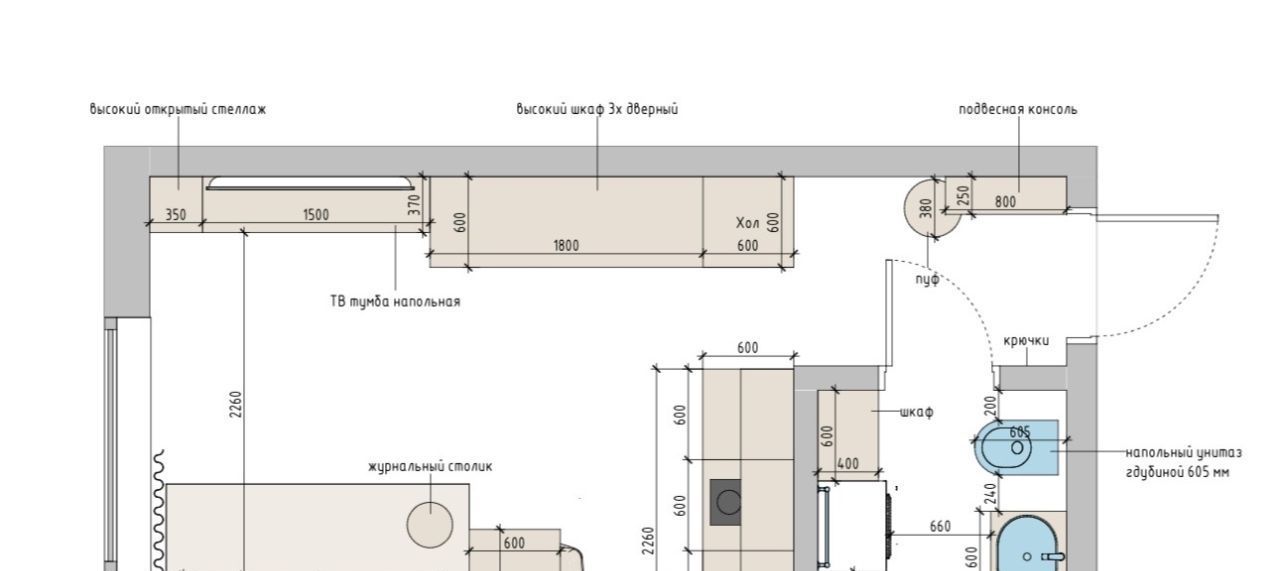 Квартира студийного плана в современном жилом комплексе "Клементин".