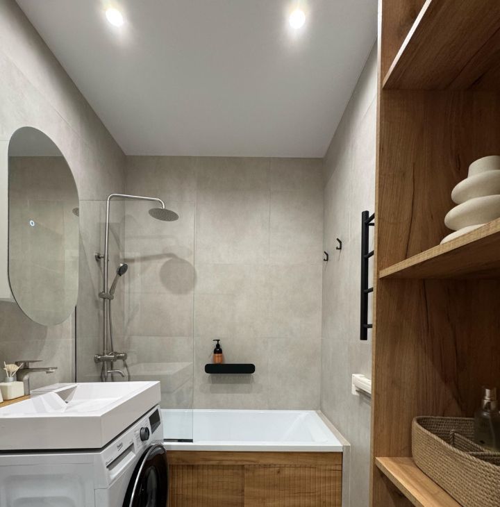 Есть всё необходимое для комфортной жизни: новая мебель и техника, раскладной диван, шкаф, холодильник, посудомоечная машина, микроволновка, кондиционер и стиральная машина-автомат уже установлены и готовы к использованию.