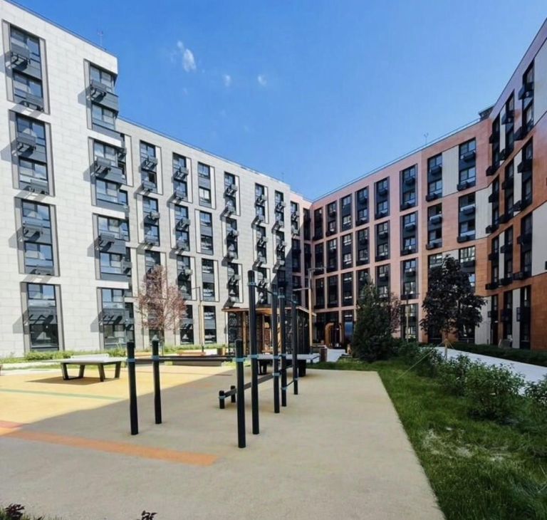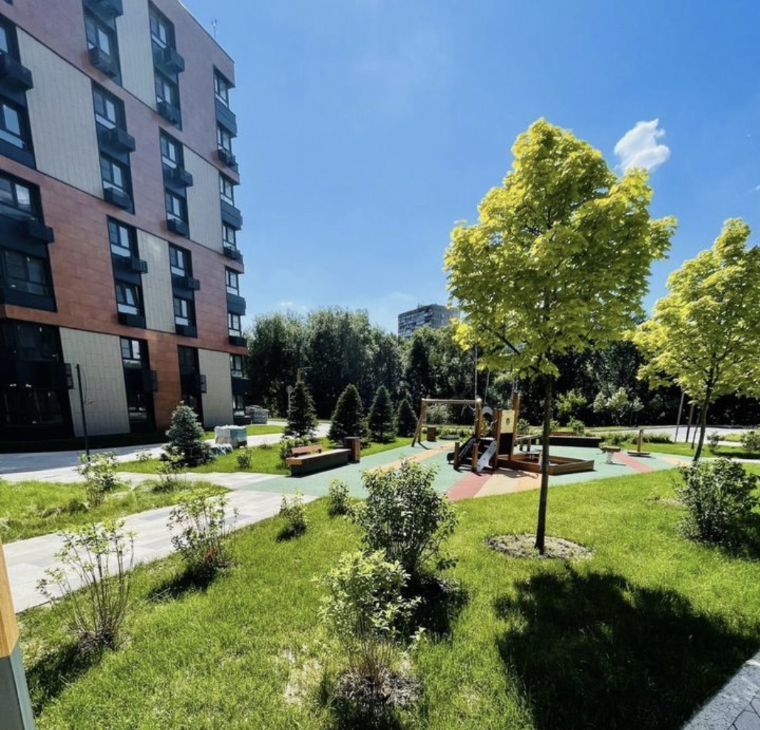 Закрытая территория - собственный охраняемый двор с детской площадкой, уличными тренажерами и беседками. Живописный парк в 50 метрах от дома.