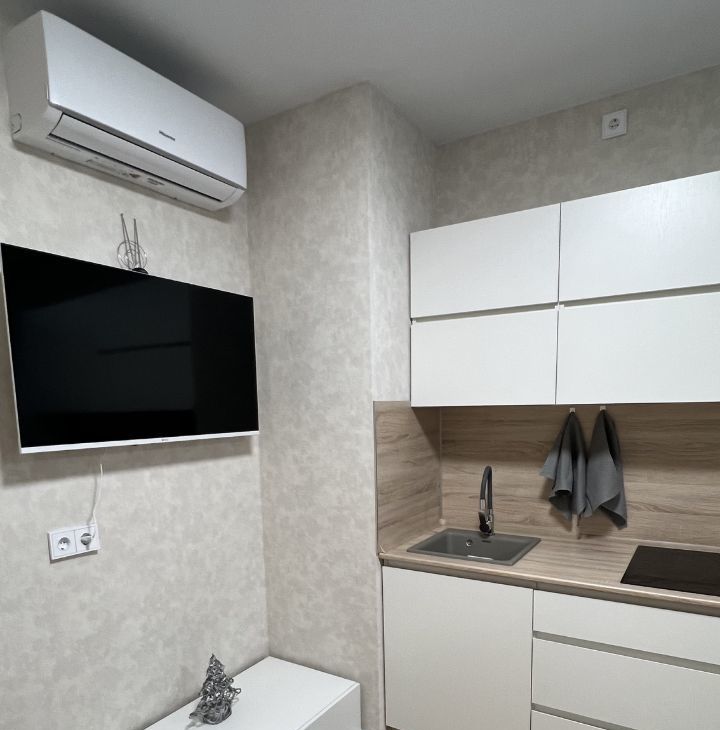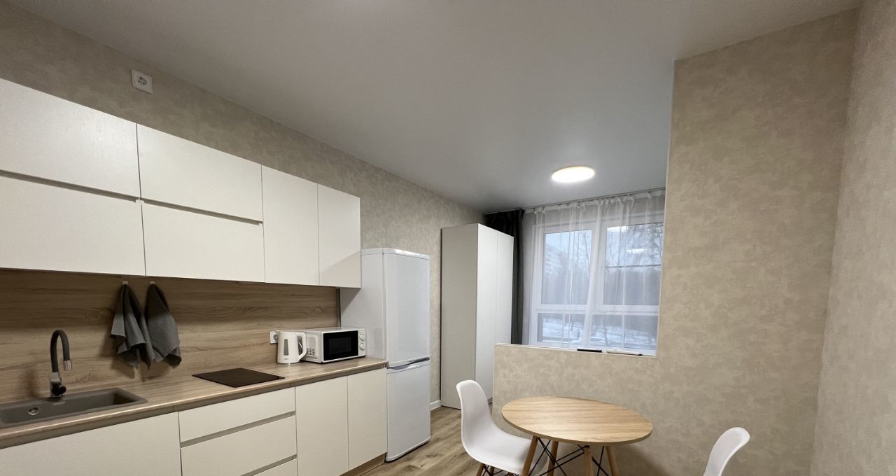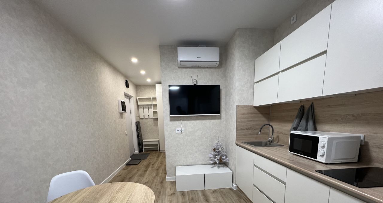 Апартаменты площадью 25 кв. м на улице Корнейчука, 27. Дом построен в 2024 году по монолитной технологии. Квартира расположена на 2 этаже 8-этажного дома, окна выходят на улицу, в сторону парка Этнографическая деревня Бибирево.
