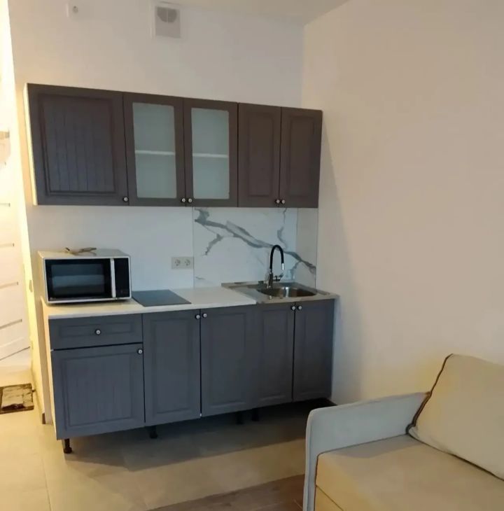 В квартире сделан качественный евроремонт. Установлены все необходимые для комфортного проживания предметы техники: кондиционер, холодильник, телевизор и стиральная машина. Мебель есть как в комнате, так и на кухне, поэтому можно сразу заселиться и жить без лишних хлопот. Ванная комната оборудована современной душевой кабиной.