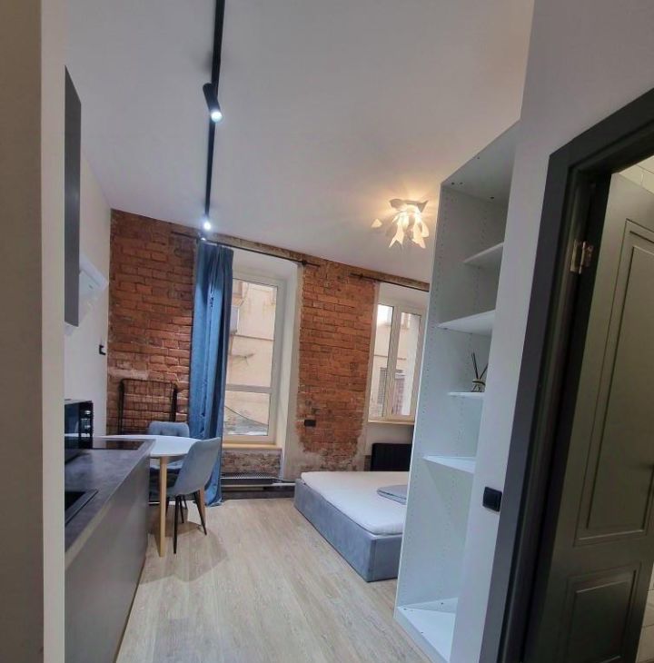 Сдается студия с дизайнерским ремонтом в кирпичном доме 1907 года постройки. Окна выходят на закрытую территорию. Курение запрещено, но можно проживать с детьми и питомцами.