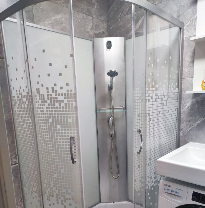 В квартире сделан евроремонт, есть вся необходимая мебель как в комнате, так и на кухне. Установлены кондиционер, холодильник, телевизор и стиральная машина. Санузел совмещённый, оборудован душевой кабиной. Окна выходят во двор, поэтому в квартире всегда тихо и спокойно.