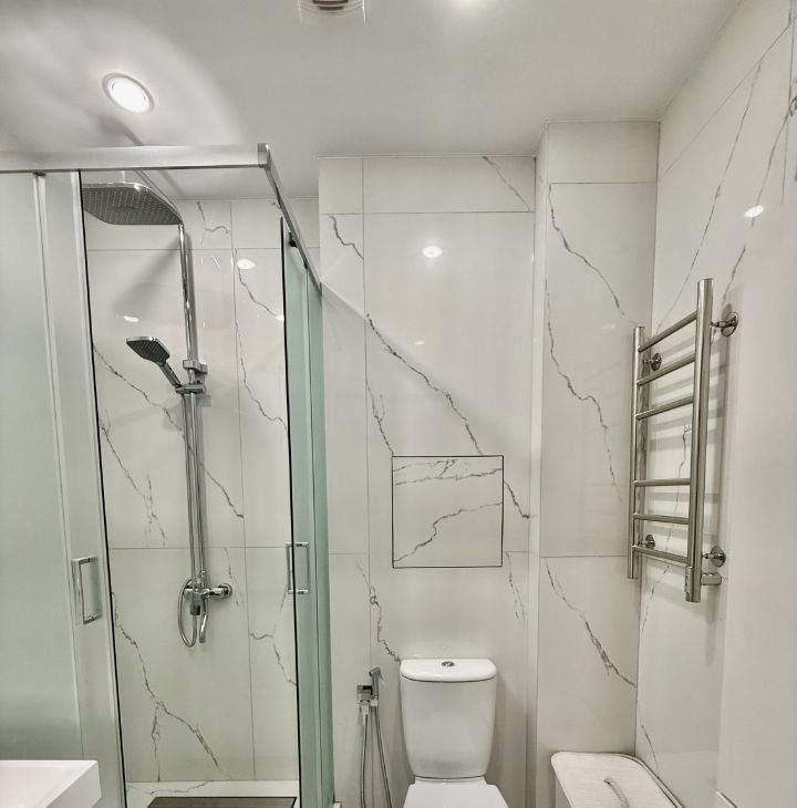 - современный санузел с душевой кабиной и качественной сантехникой;