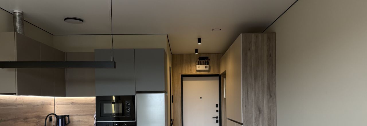 Предлагаем вашему вниманию стильную студию в современном доме 2025 года постройки. Квартира расположена на 10-м этаже 23-этажного здания, общая площадь составляет 28.6 кв. м, жилая площадь — 24 кв. м, кухня — 4 кв. м. Высота потолков — 2.5 метра.
