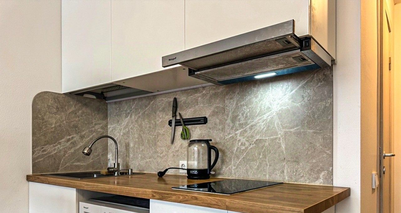 Квартира оборудована кухонным гарнитуром, мебелью и бытовой техникой:
