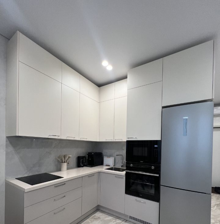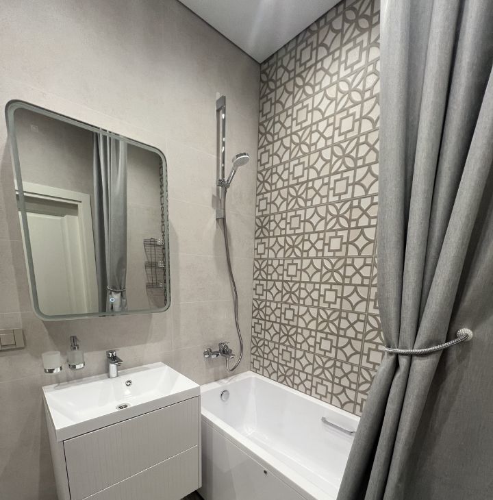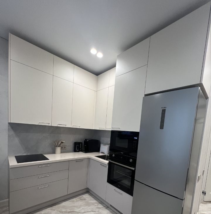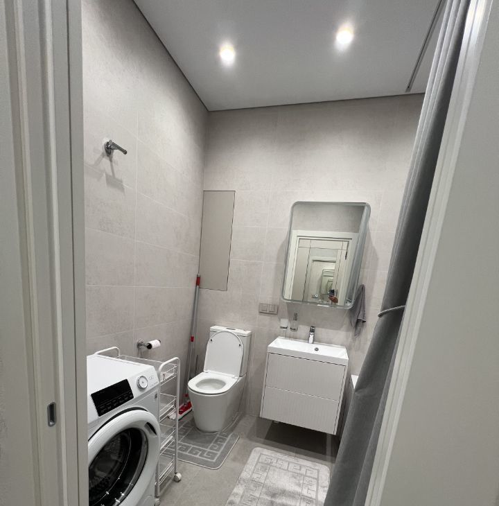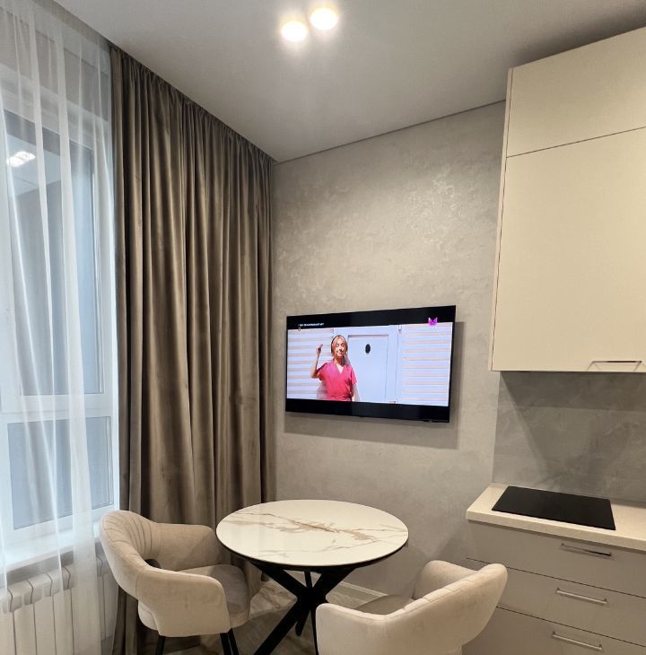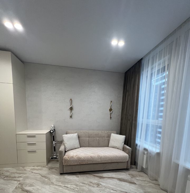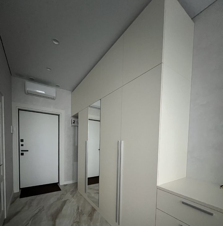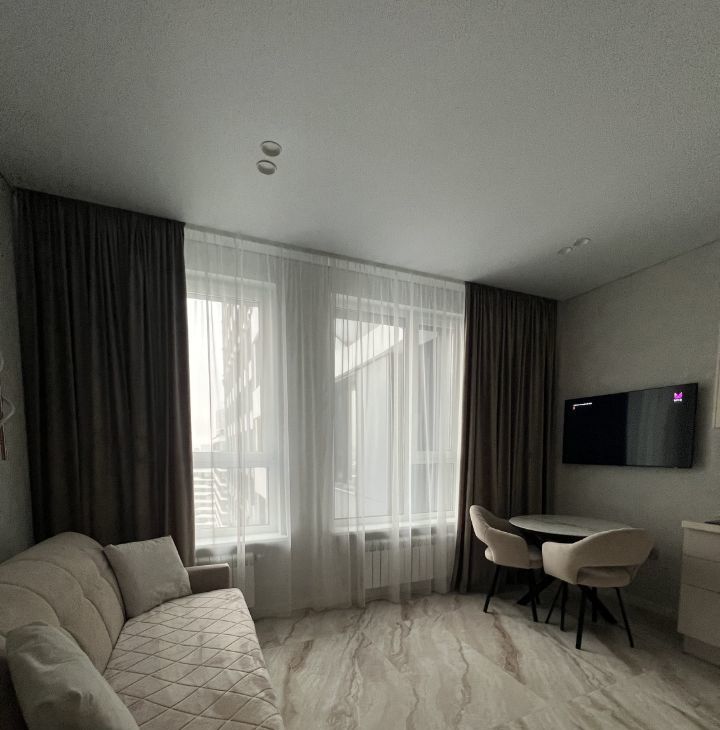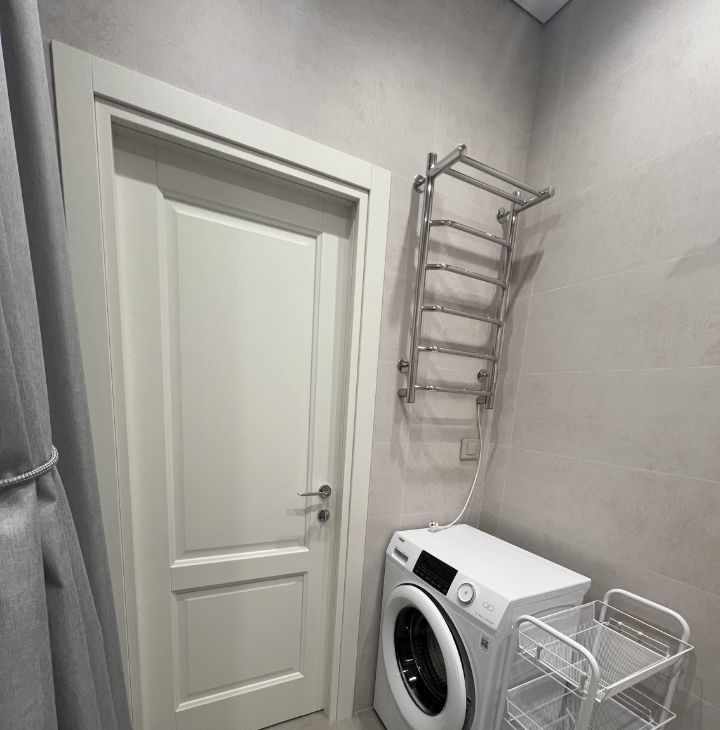 Сдаётся в аренду квартира студия площадью 26,9 кв. м О квартире Квартира новая, после качественного ремонта — в ней ещё никто не жил. Полностью готова к комфортному проживанию: всё необходимое уже есть. Кухня: гарнитур MR. Doors, бытовая техника Haier (холодильник, СВЧ печь, духовой шкаф, посудомоечная машина, варочная панель, вытяжка). Посуда и мелкая техника: полный комплект (тарелки, чашки, столовые приборы, кастрюли, сковородки и др.), электрочайник, кофемашина DeLonghi, фильтр для питьевой воды. Жилая зона: шкаф и комод MR. Doors, стол и стулья, телевизор Samsung с функцией Smart TV, диван аккордеон с бельевым коробом. Есть всё для комфортного сна (подушки, одеяло, наматрасник), а также ночные бра, подсветка штор, кондиционер. Хозяйственные принадлежности: сушка для белья, гладильная доска, утюг, пылесос. Связь и интернет: Wi Fi, установлены интернет розетки. Санузел: ванна и раковина из литьевого мрамора, подвесная тумба, зеркало с подсветкой, стиральная машина Haier, сантехника и аксессуары Hansgrohe, проточный водонагреватель Stiebel Eltron, электрический полотенцесушитель. Прихожая: шкаф с зеркалом MR. Doors, видеодомофон CAME (связь с консьержем), обувница. Электрооснащение: вся электрика — BTicino. О доме и территории Первый этаж отведён под коммерческие помещения. Территория огорожена и охраняется; есть подземный паркинг и кладовки. Вход по смарт картам. Входная группа: чистка для обуви, коворкинг, колясочная, гостевой санузел, вендинговые аппараты, консьерж сервис. Дополнительно: лаунж зона на кровле (на крыше).