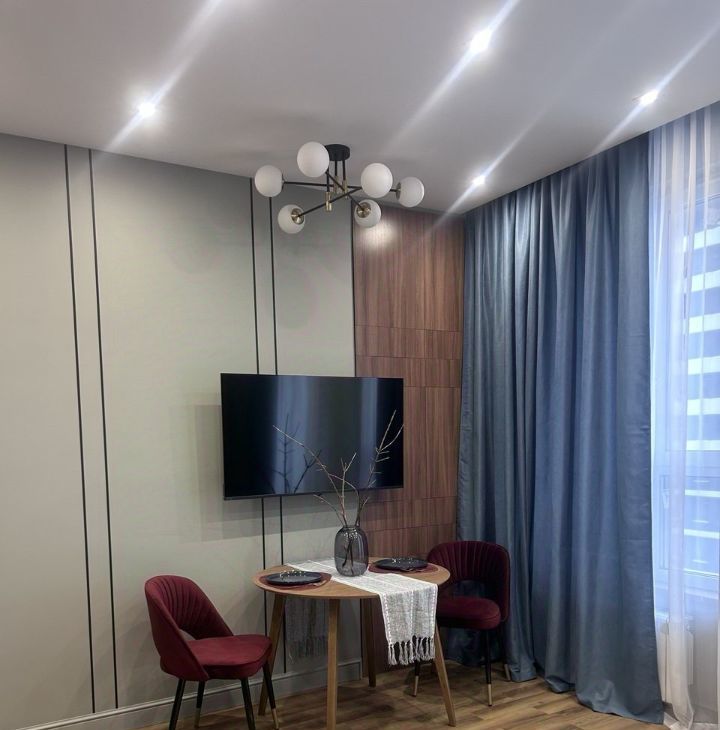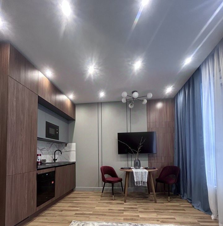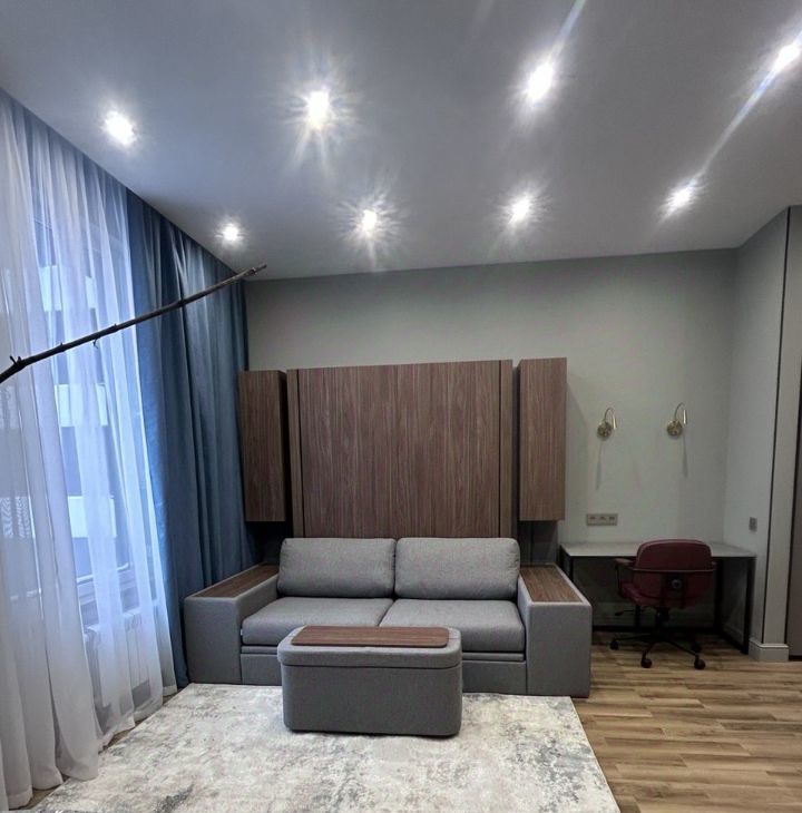 Квартира с продуманной планировкой и вниманием к деталям: кухня оснащена всей необходимой современной техникой и комфортной обеденной зоной. В качестве спального места установлен диван-трансформер, легко превращающийся в полноценную кровать с удобным матрасом, обеспечивающим полноценный и комфортный сон. На входе вместительный шкаф под хранение вещей.