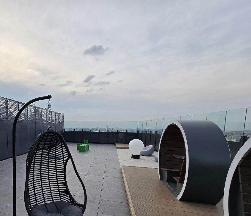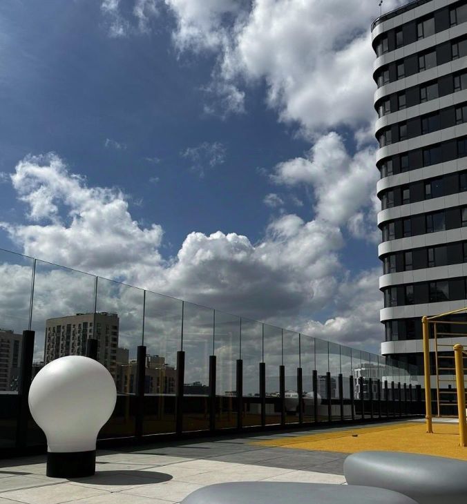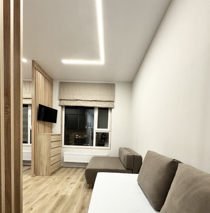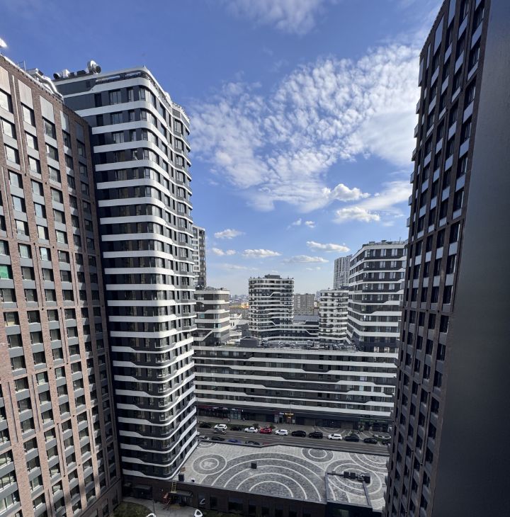29 кв.м, 14 этаж 25-этажного монолитного дома 2025 года постройки, высокие потолки, окна во двор, красивый вид из окна, тихие улицы (отсутствие трасс и транспортных развязок рядом с домом).