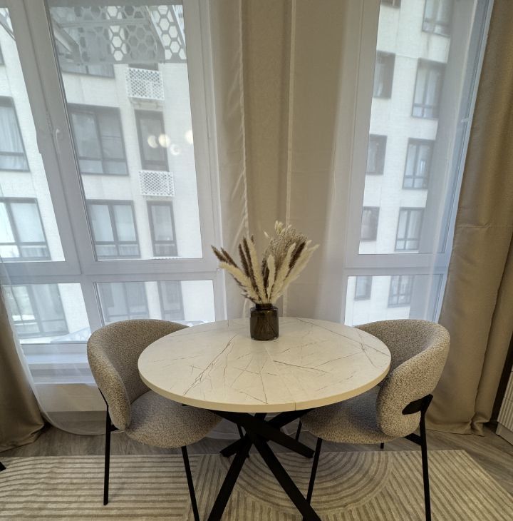 Квартира в современном интерьере, светлая и уютная, два окна, окна выходят во двор, тихо и свежо.