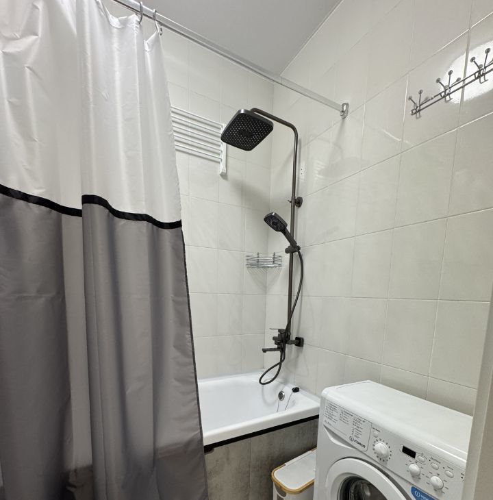 Санузел совмещенный с ванной, что дает возможность после сложного рабочего дня, позволить себе водный расслабляющий релакс под приятную музыку не выходя из дома.