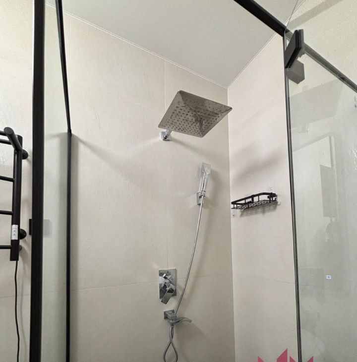 - ВАННАЯ комната оснащена просторной душевой кабиной, гигиеническим и тропическим душем .