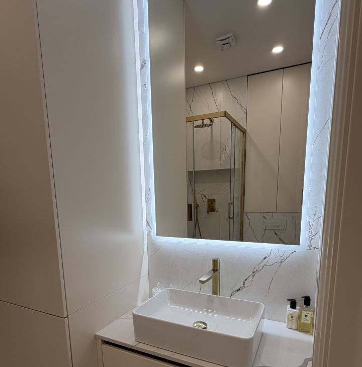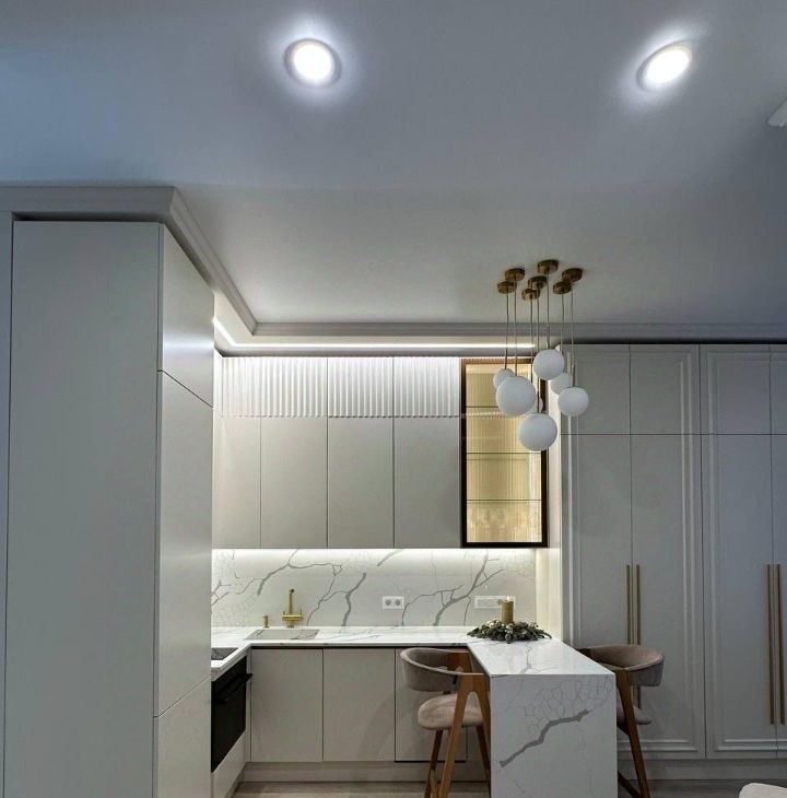 - Премиальная техника: стиральносушильная машина Samsung, встроенная посудомоечная машина Bosch, духовка с функцией микроволновой печи Samsung и другая мелкая бытовая техника.