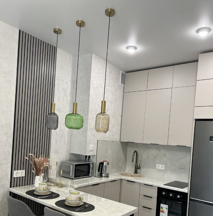 В квартире выполнен дизайнерский ремонт, который создает современную и уютную атмосферу. Пространство организовано максимально функционально: зона отдыха и рабочая часть грамотно сочетаются. В квартире есть вся необходимая мебель как на кухне, так и в комнате. Совмещенный санузел оборудован душевой кабиной. Из техники в вашем распоряжении кондиционер, холодильник, посудомоечная машина, телевизор и стиральная машина. Также подключены интернет и телефон.