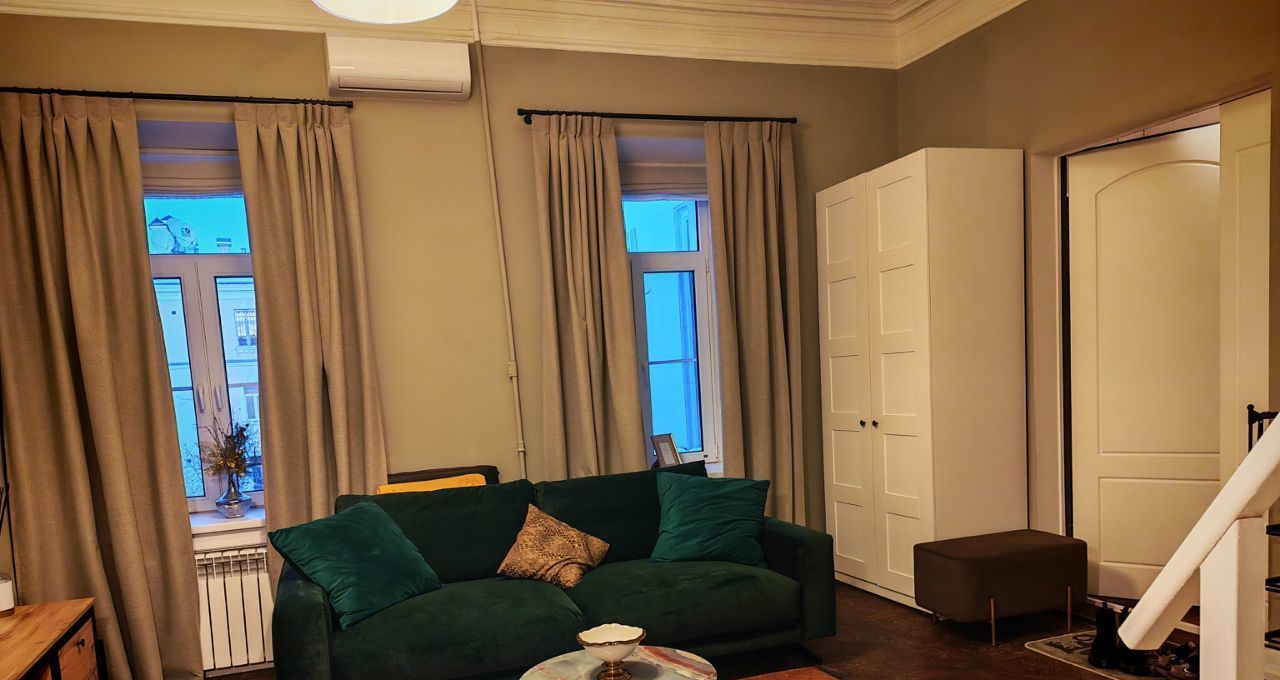 Сдается стильная студия на длительный срок, расположенная в историческом здании в топовой локации рядом с Чистыми прудами и театром "Современник". В помещении выполнен шикарный дизайнерский ремонт. Все продумано до мелочей. Имеется кровать- чердак с ортопедическим матрацем, гостинная с огромным уютным диваном, встроенная кухня,оборудованная всей необходимой бытовой техникой и обеденной зоной, вместительный встроенный шкаф, телевизор, тройные стеклопакеты, окна на Чистые пруды, огороженная закрытая территория.Квартира просторная и в то же время малонаселенная, других жильцов практически не видно. Для желающих жить в самом центре города, рядом вся инфраструктура для комфортной жизни: кафе, рестораны, магазины, театры, прогулочные зоны, бульвары. Идеально для пары или одного человека. Рассмотрим Россиян без детей и животных