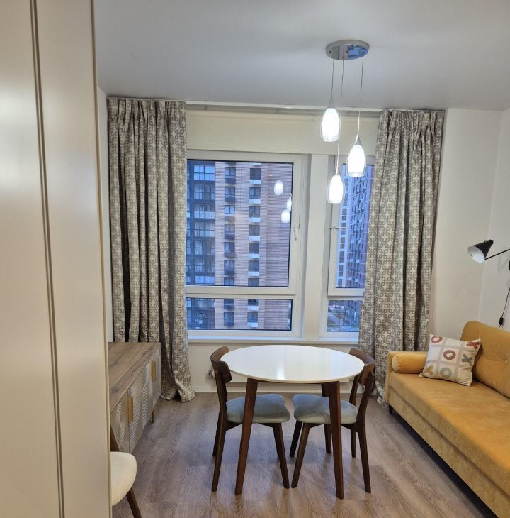 В новом доме впервые сдаётся студия после дизайнерской меблировки. Квартира с хорошим ремонтом, укомплектована импортной техникой и качественной мебелью.Есть два вместительных шкафа для одежды, встроенные холодильник, СВЧ, СМА ( с функцией сушки). Закрытый двор с детской площадкой, подземный паркинг. Район с развитой инфраструктурой: супермаркеты, аптеки, салоны красоты, маркетплейсы, фитнес,кофейни. пекарни. До метро Озёрная 7 мин пешком. В 15 мин. ходьбы Очаковские пруды для прогулок и спорта. До аэропорта Внуково 20 мин на метро. Рассмотрим очень аккуратных и порядочных арендаторов без материальных проблем и вредных привычек. Залог можно разбить на два месяца.
