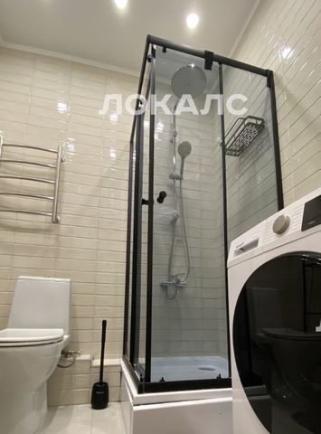 Санузел совмещённый, оборудован современной душевой кабиной с тропическим душем. В интерьере использована качественная мебель как в комнате, так и на кухне.