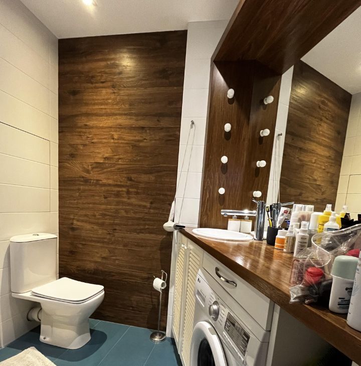 • Стиральная машина, удобные поверхности и шкафчики для хранения.