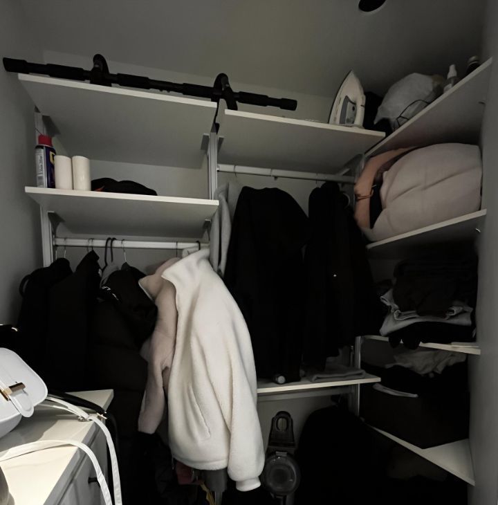 • Отдельная гардеробная с полками и штангами, удобно хранить одежду, чемоданы и технику.