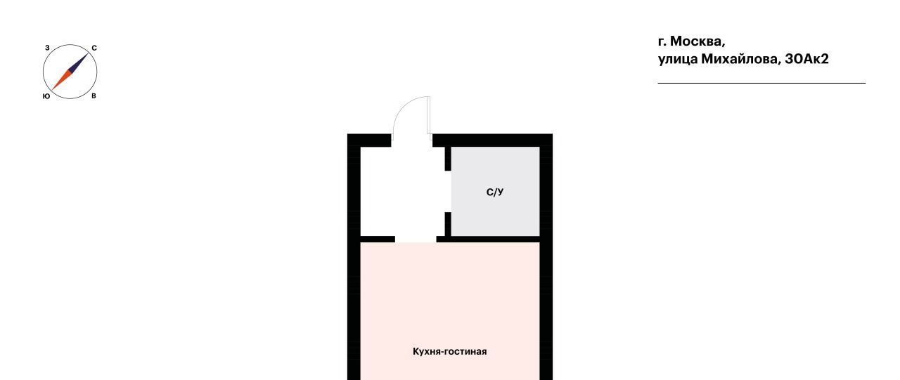 Студия Москва ул. Михайлова, 30Ак2 (23.5 м²)