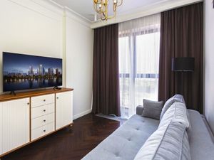 Квартира с дизайнерским ремонтом, полностью меблирована и укомплектована всей необходимой техникой: кондиционер, холодильник, посудомоечная машина, телевизор и стиральная машина. Просторная ванная комната с ванной. На кухне и в комнате есть вся необходимая мебель, что позволяет вам сразу чувствовать себя как дома. Несколько больших шкафов для хранения.