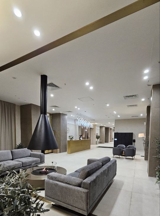 В гранд лобби : коворкинг, места для отдыха, просмотра фильмов, с возможностью поиграть в PS.
