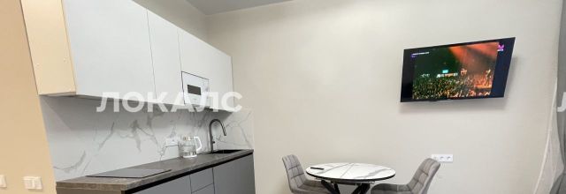 Студия выполнена с дизайнерским ремонтом и полностью укомплектована необходимой мебелью и техникой. На этой неделе установят вместительный шкаф-купе. В квартире есть кондиционер, холодильник, посудомоечная и стиральная машины, а также телевизор. Теплые полы на кухне и в санузле. Кухонная зона оснащена всем необходимым для комфортного проживания. В совмещенном санузле установлена немецкая и итальянская сантехника.