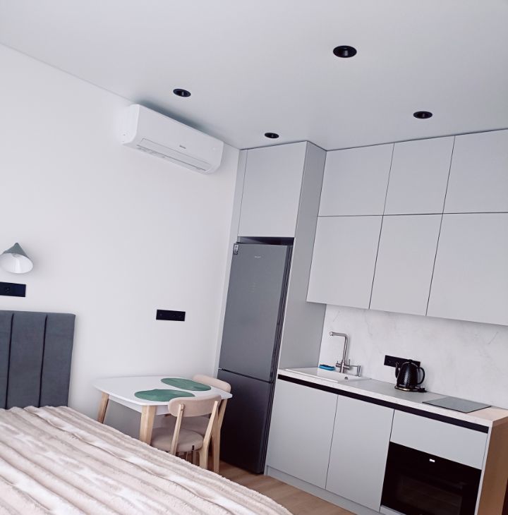 Для комфорта предусмотрены кондиционер и современный бризер (приточная вентиляция), качественный матрас и точечное освещение, в санузле большая душевая в строительном исполнении также установлен гигиенический душ, теплые полы. Квартира абсолютно новая, никто ранее не проживал.