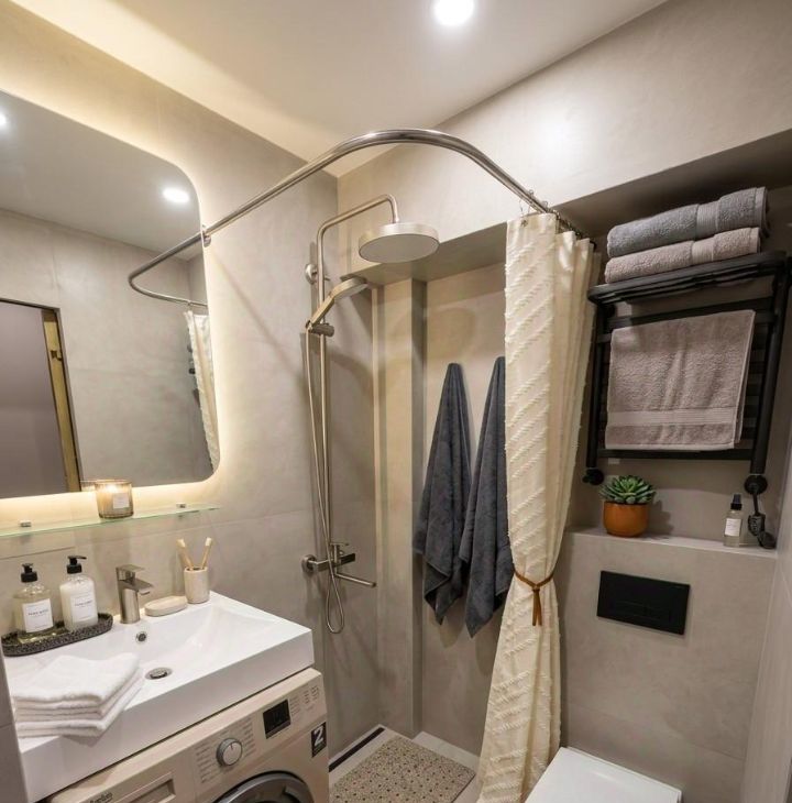 Санузел: душевая кабина, стиральная машина.