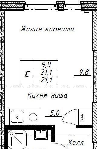 Студия Москва ул. Поляны, 5Ак4 (21.1 м²)