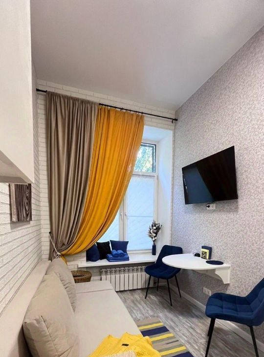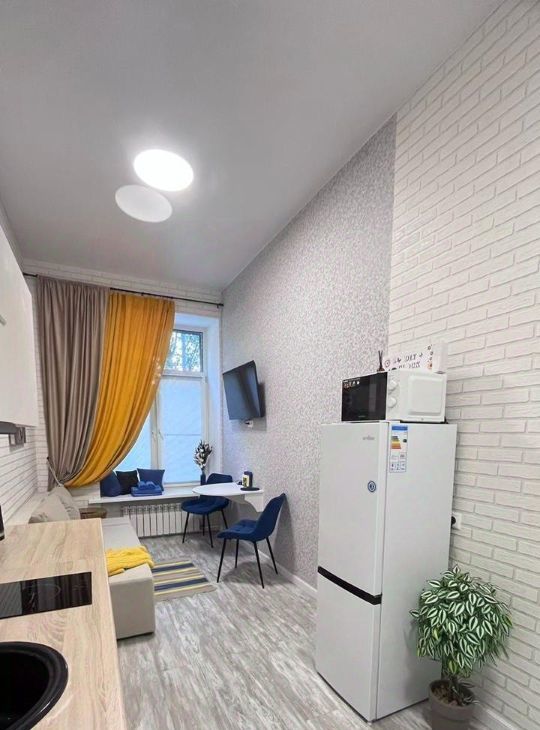Площадь студии составляет 14 кв.м., она расположена на первом этаже 8-миэтажного дома и полностью укомплектована мебелью и бытовой техникой для вашего комфорта. Интерьер соответствует фотографиям, что гарантирует приятное проживание.