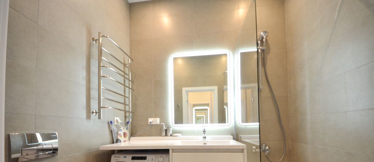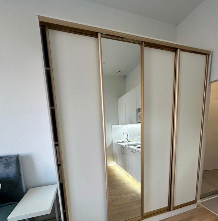 Уютный апартамент полностью готовый для заселения. Есть все для комфортного проживания: на кухне посудомоечная машина, в ванне стиральная машина с функцией сушки белья, кровать 1,60 с ортопедическим матрасом, центральная система кондиционирования в доме. Организовано достаточное количество места для хранения: в прихожей встроенный шкаф, шкаф в комнате, кровать с подъёмным механизмом и ящиками для хранения вещей.