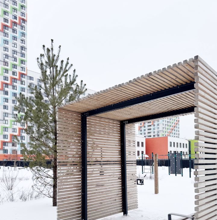 - закрытый двор-парк с концепцией "Двор без машин", где тихо и уютно, много зелени, а также благоустроенные зелёные пространства на территории района.
