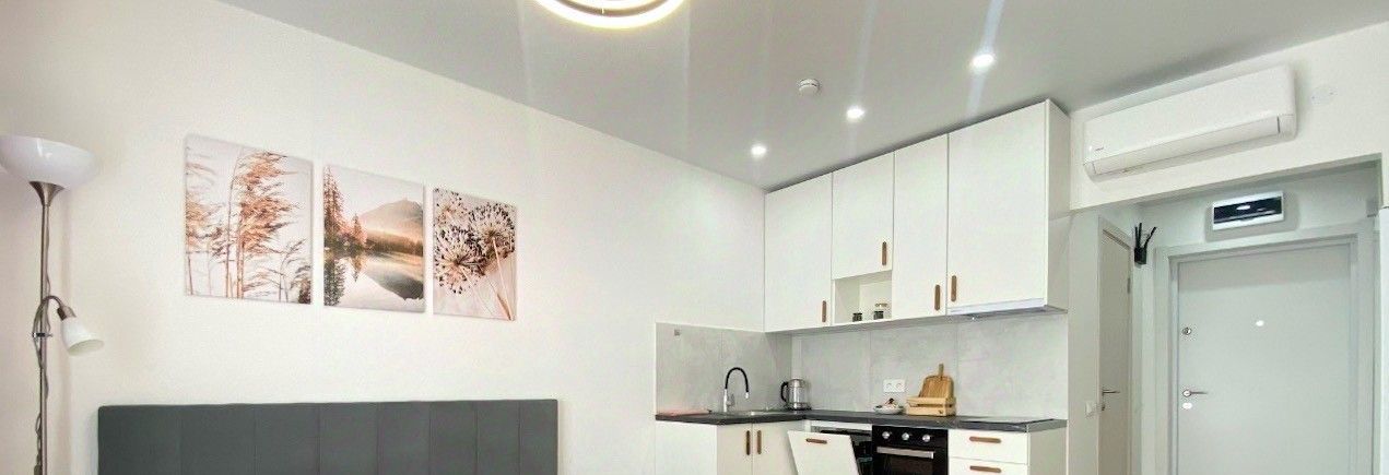 Впервые сдаётся светлая квартира-студия с евроремонтом и совмещённым санузлом в ЖК Римского-Корсакова 11, без депозита!