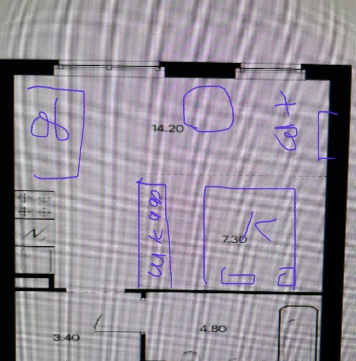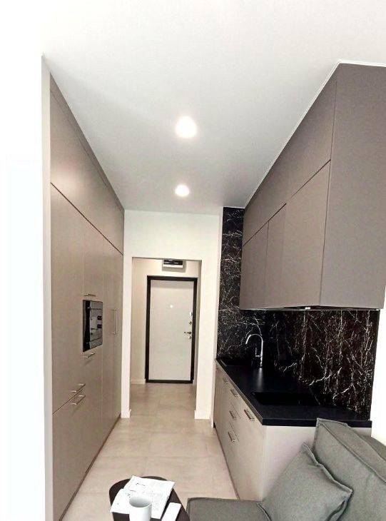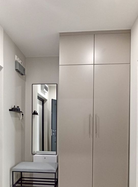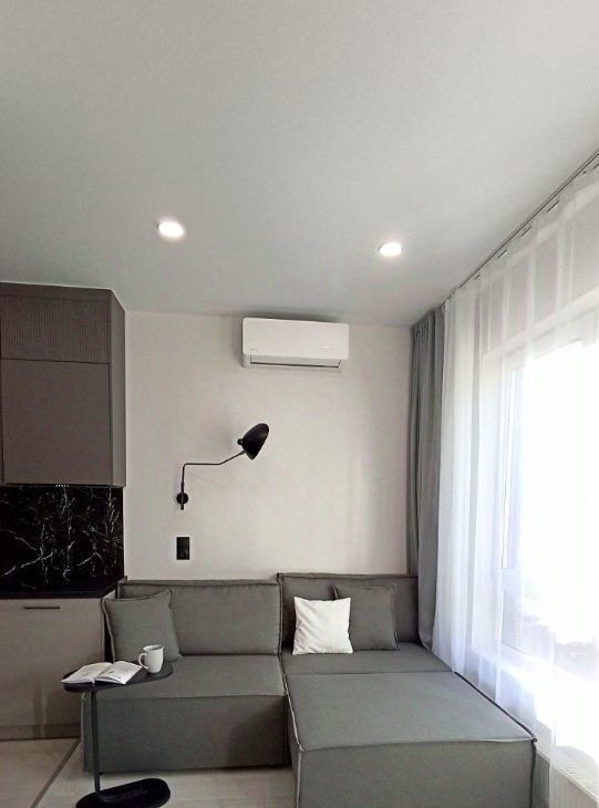 Розетки, освещение продуманы для каждой зоны: у дивана, кровати, обеденной зоны, зоны ТВ, в кухне. Есть теплый пол в коридоре, в кухне, в санузле. Усиленная входная дверь.