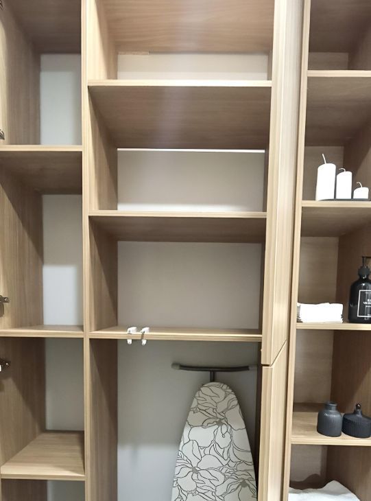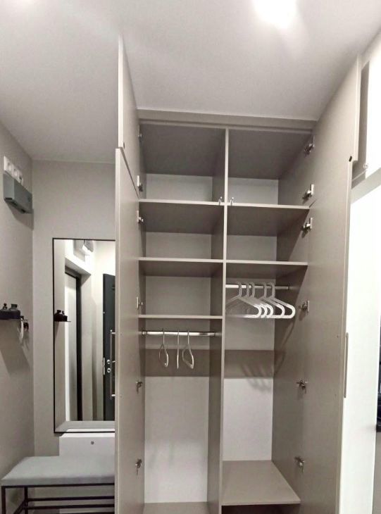 - три шкафа (штанги, полки, верхние антресоли),