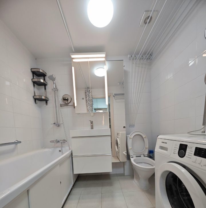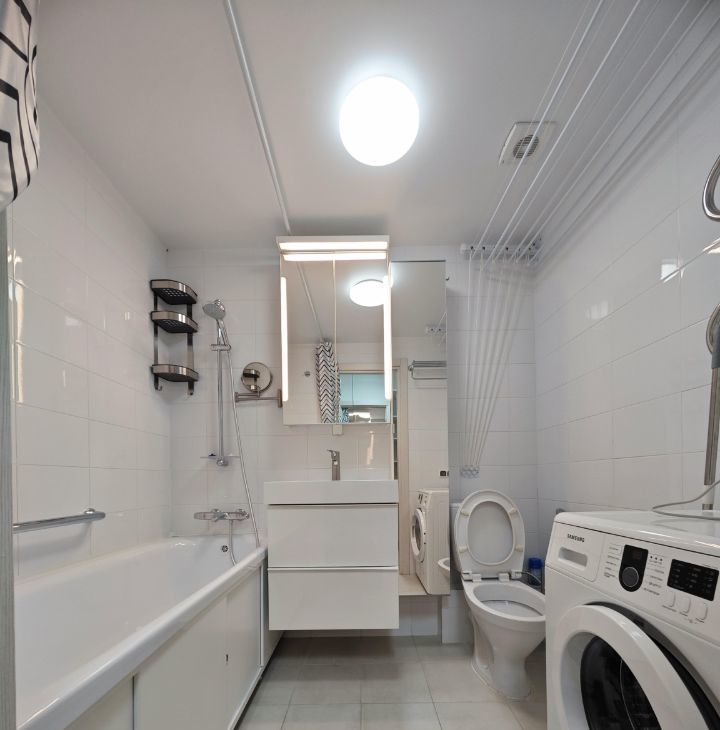 Санузел совмещенный, с ванной.