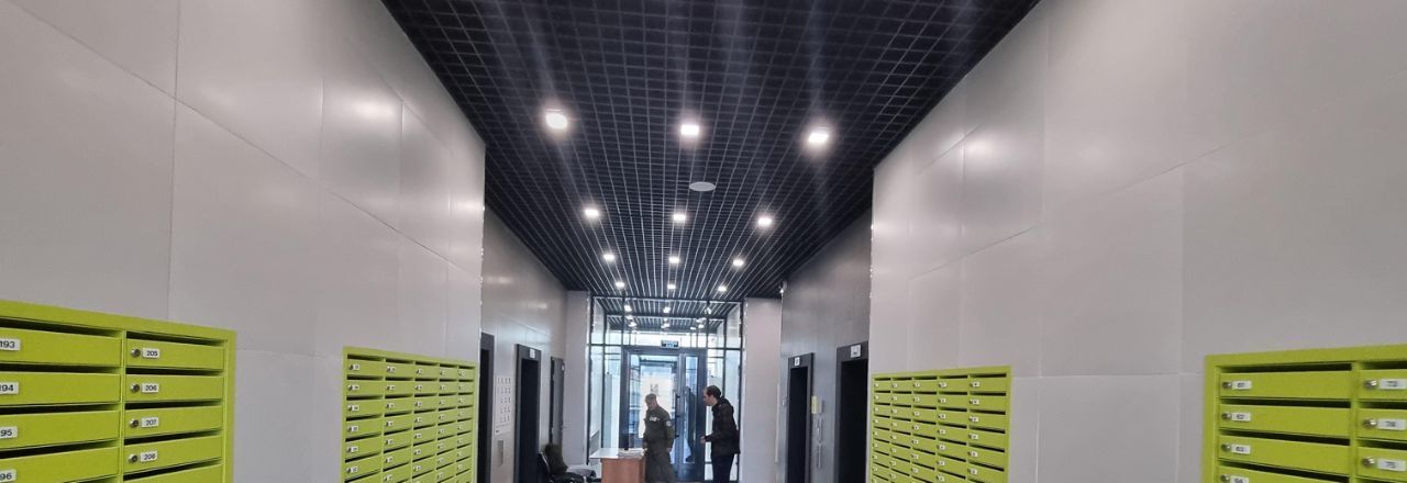 В подъезде 4 лифта.