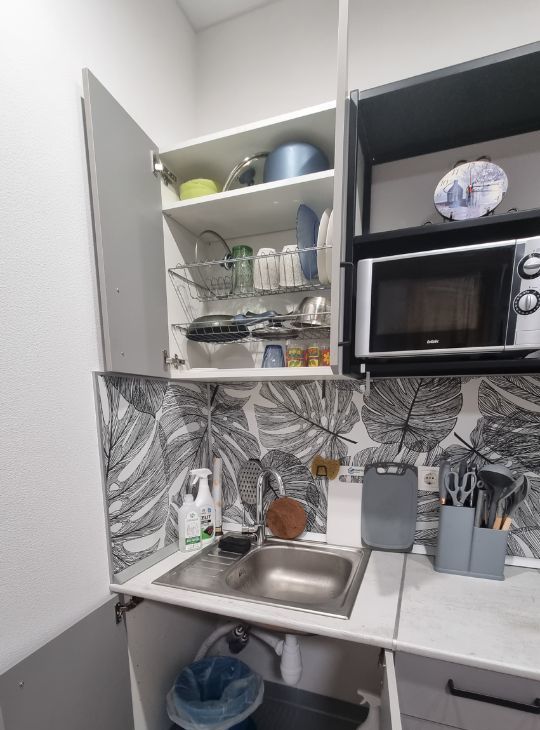 Квартира полностью готова для проживания, в ней имеется посуда, постельное бельё и т.п.