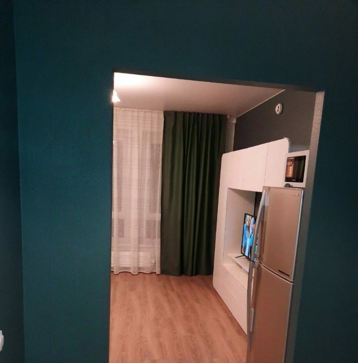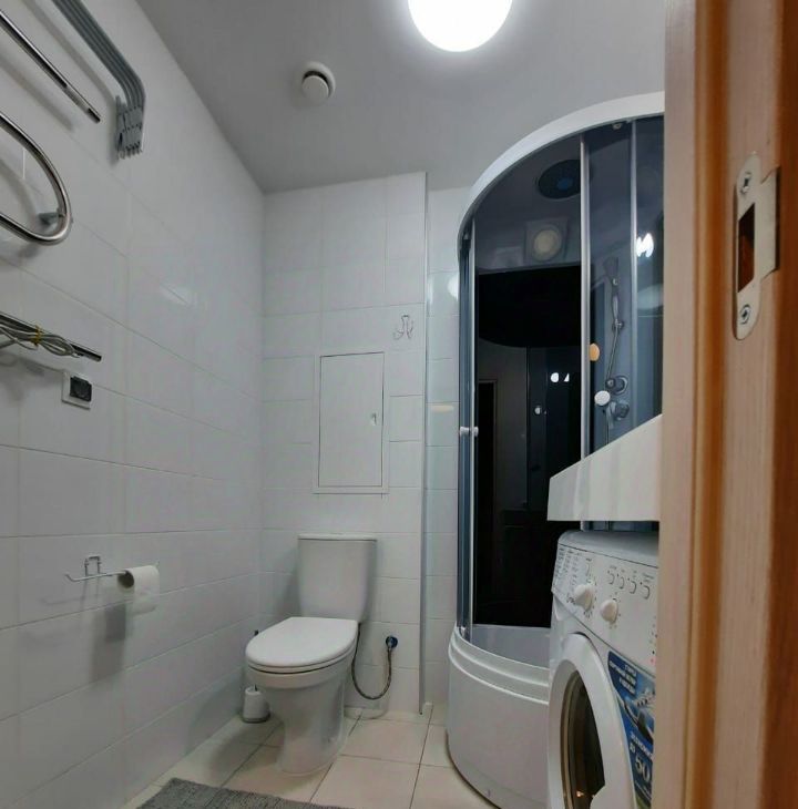 Квартира после евроремонта, что заметно с первых шагов. В студии есть вся необходимая мебель: удобная зона отдыха и функциональная кухня. Из техники есть холодильник, стиральная машина и телевизор. Ванная комната оборудована душевой кабиной.