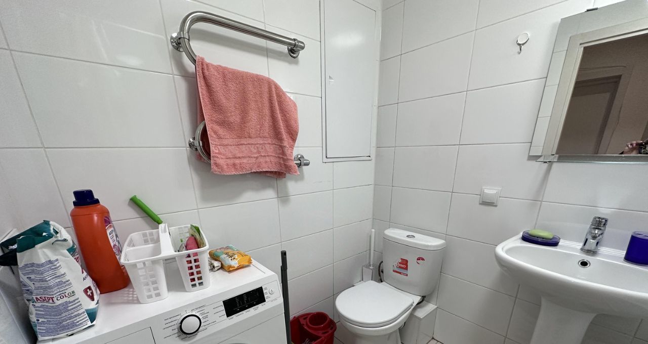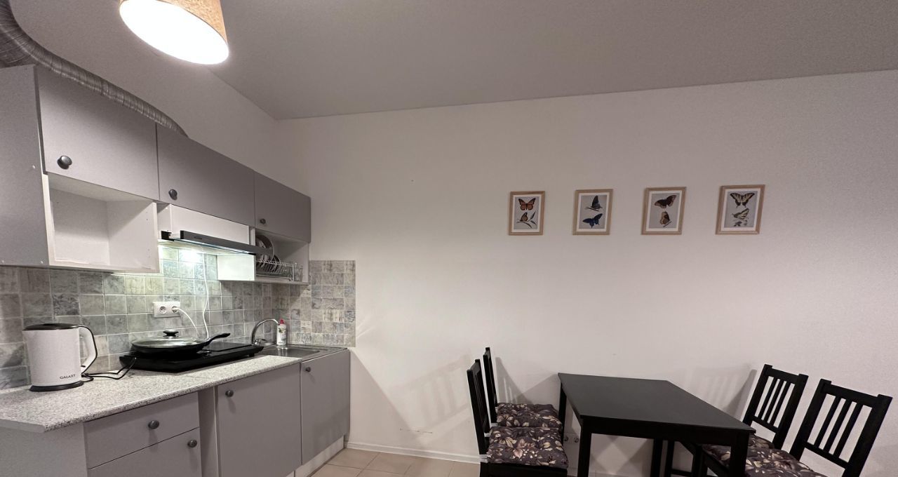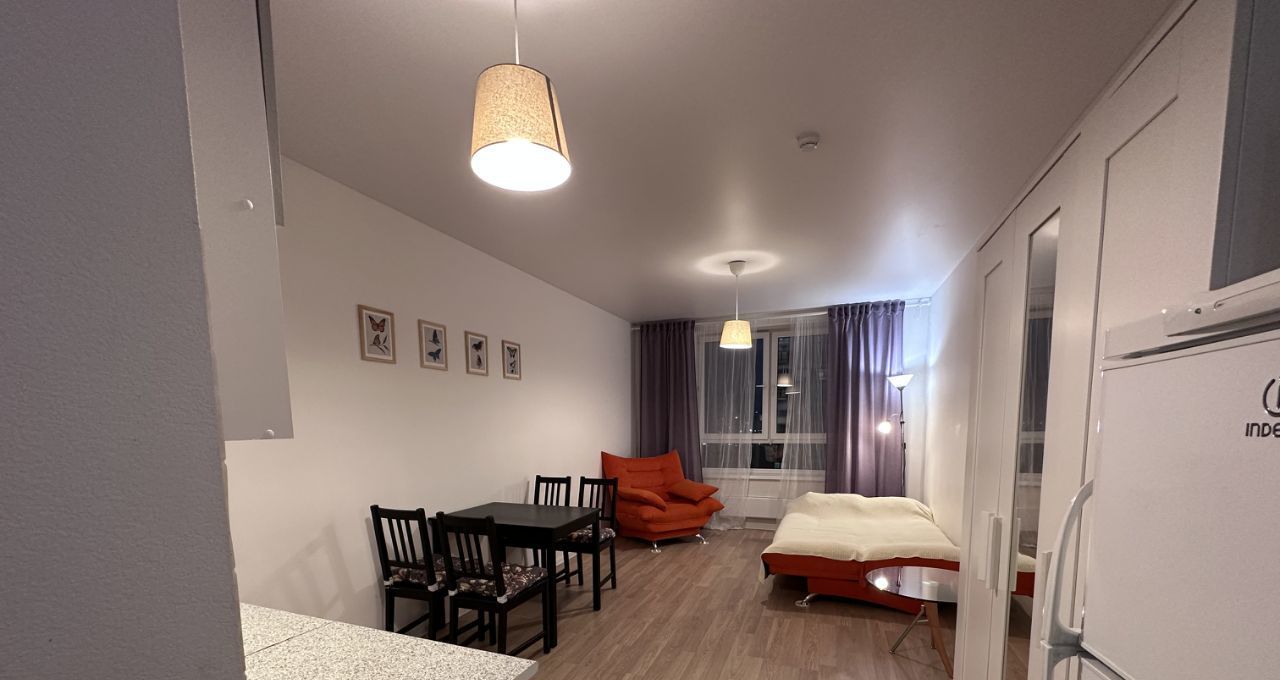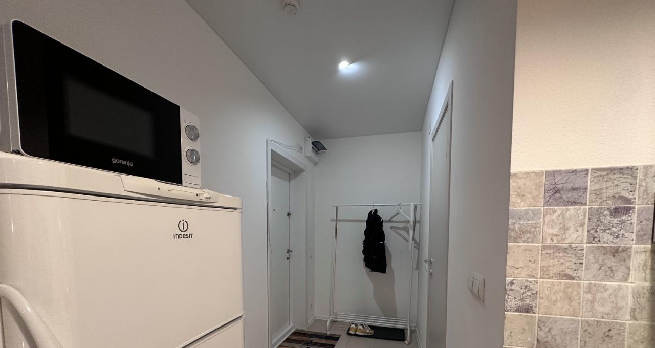 В квартире есть все необходимое для комфортного проживания: современная мебель на кухне и в комнате, холодильник и стиральная машина. Санузел совмещенный, оборудован ванной. Окна выходят на улицу, что обеспечивает много естественного света.