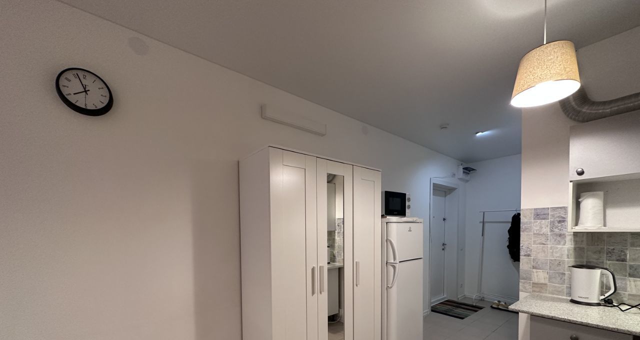 Сдается уютная студия с евроремонтом в современном монолитном доме 2018 года постройки. Квартира расположена на 21 этаже 26-этажного дома, площадь составляет 29 кв. м, а высота потолков — 2,7 метра. До станции метро Саларьево можно дойти пешком за 14 минут.