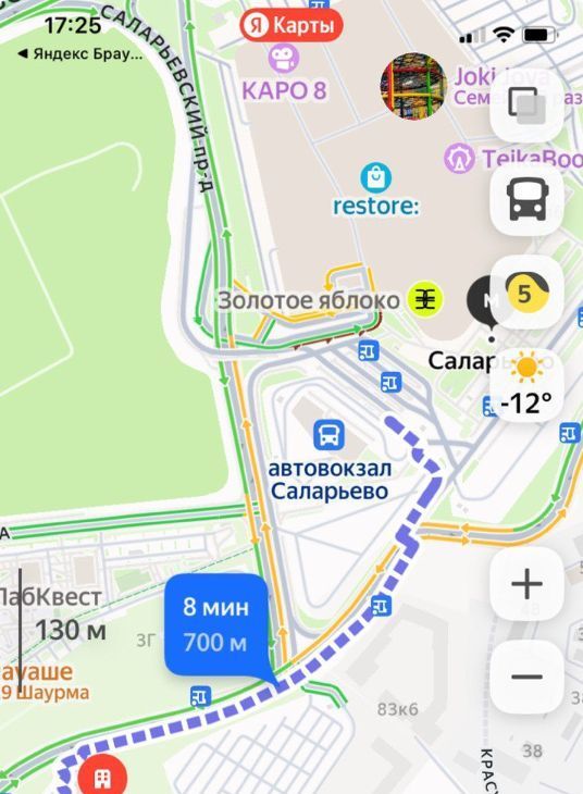 - до международного автовокзала Саларьево - 8 минут пешком