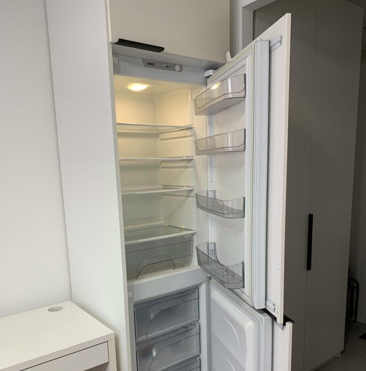 - кухонный гарнитур со встроенным холодильником с морозильной камерой, встроенной микроволновкой, индукционной плитой: