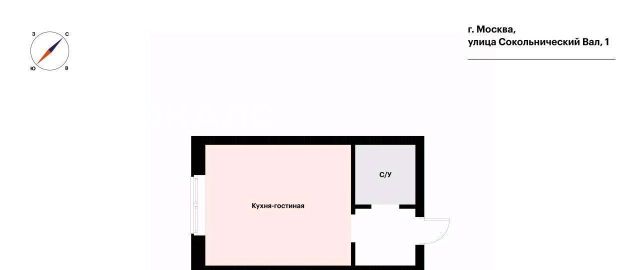 Студия Москва ул. Сокольнический Вал, 1 (21.8 м²)