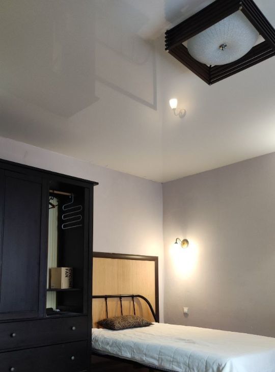 В комнате и на кухне есть вся необходимая мебель. Двухспальная кровать, большой шкаф для одежды, комод, письменный стол, кресло.