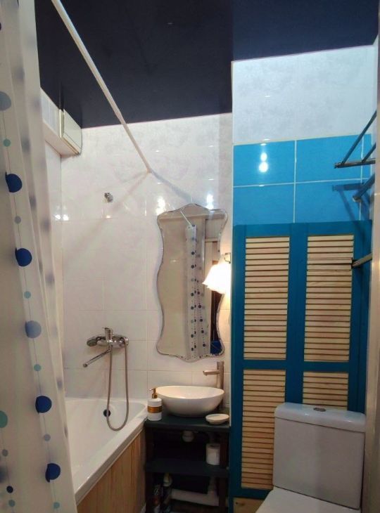 Совмещённый санузел оборудован ванной. Из техники в вашем распоряжении холодильник, стиральная машина и телевизор. Окна выходят во двор, поэтому в квартире тихо и не слышен уличный шум.